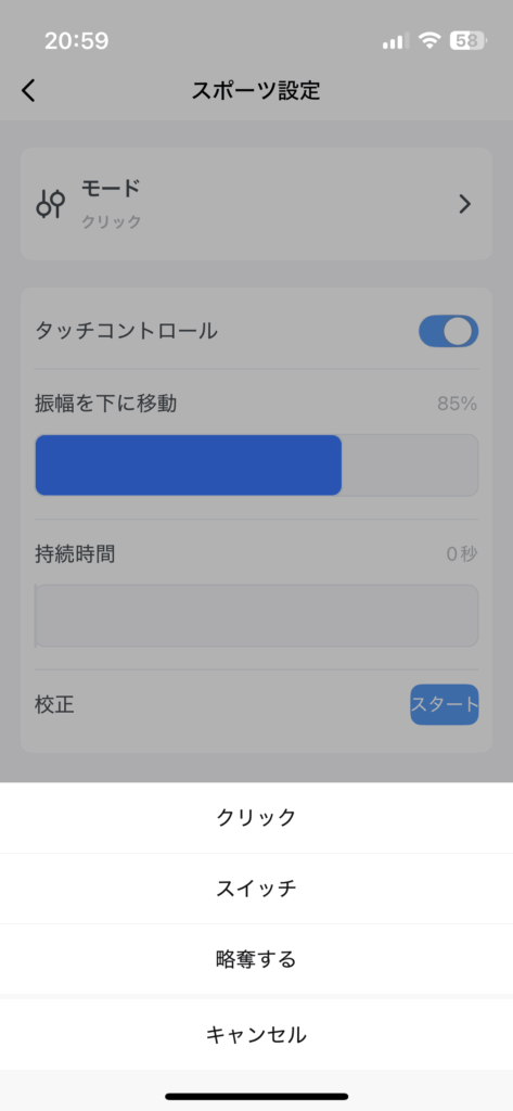 タッチコントロールの有無、振り幅の設定の違いがあります。