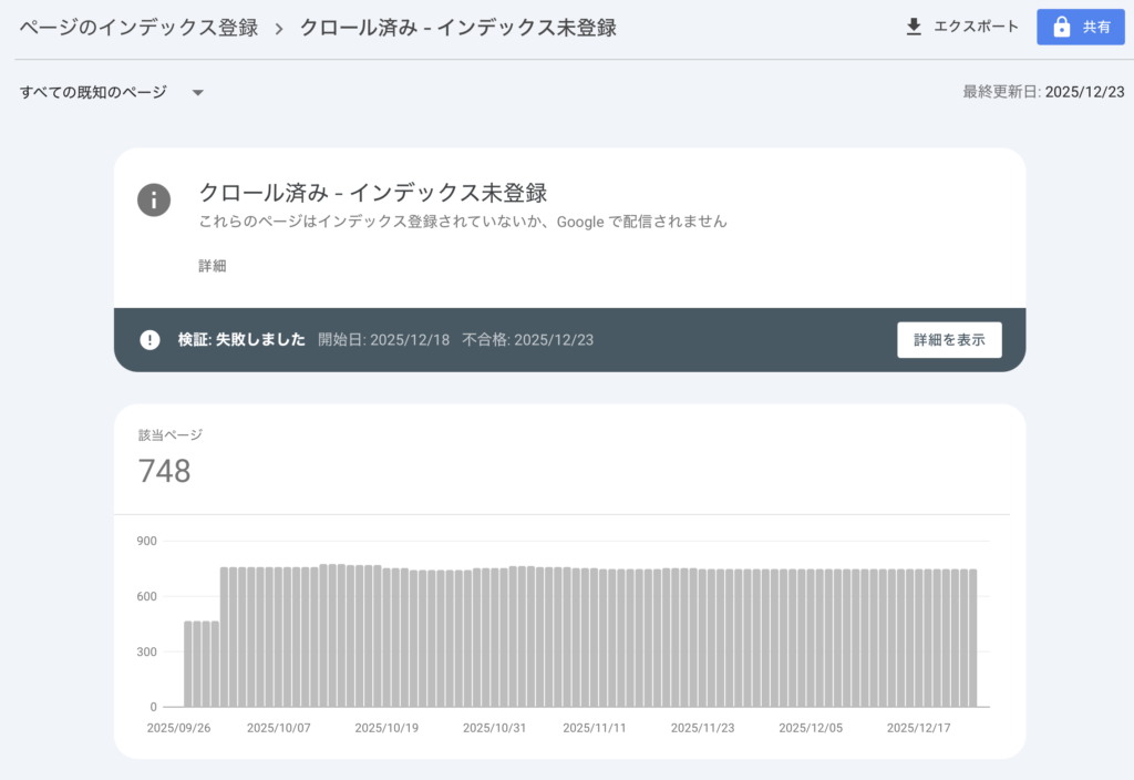 未登録扱いされたURLはリストで表示され確認することができます。日付はクロールした日。