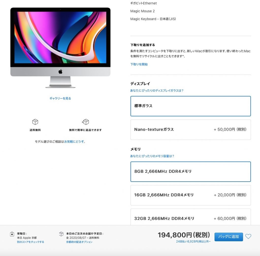 Silicon Macが今年中に出ると噂されているので、Intel対応のiMac最終モデルとなるのかもしれません。利用しているアプリケーションが「Silicon Mac」への対応するか否かで買いかどうか分かれるところです。