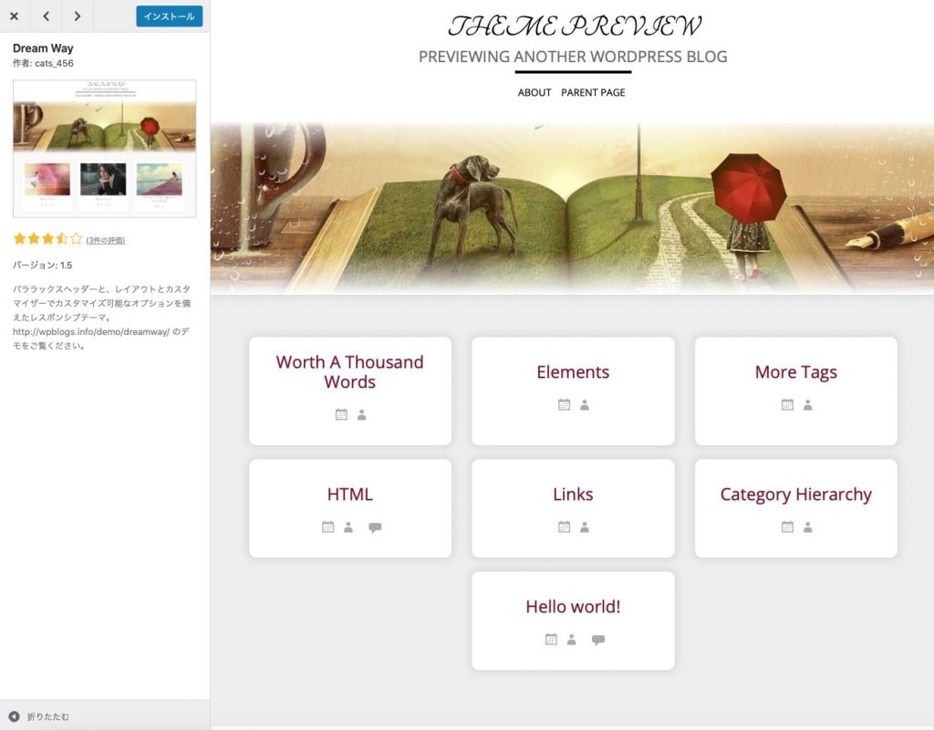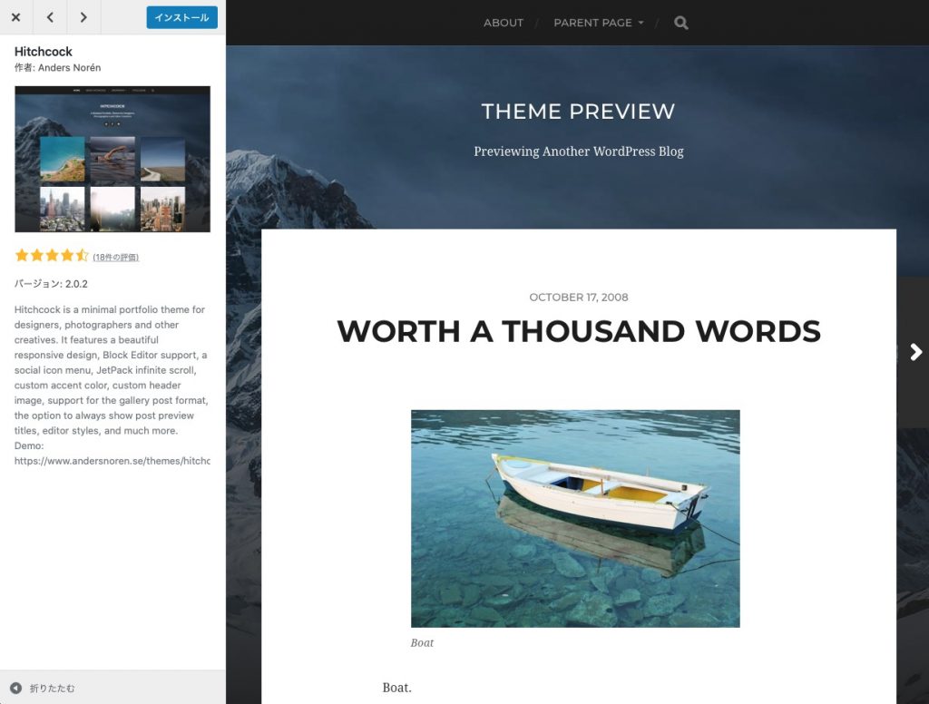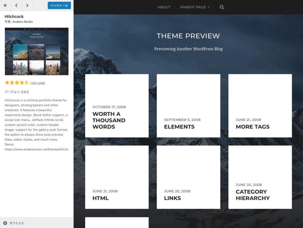 テーマの説明、実際のプレビューを確認できます。