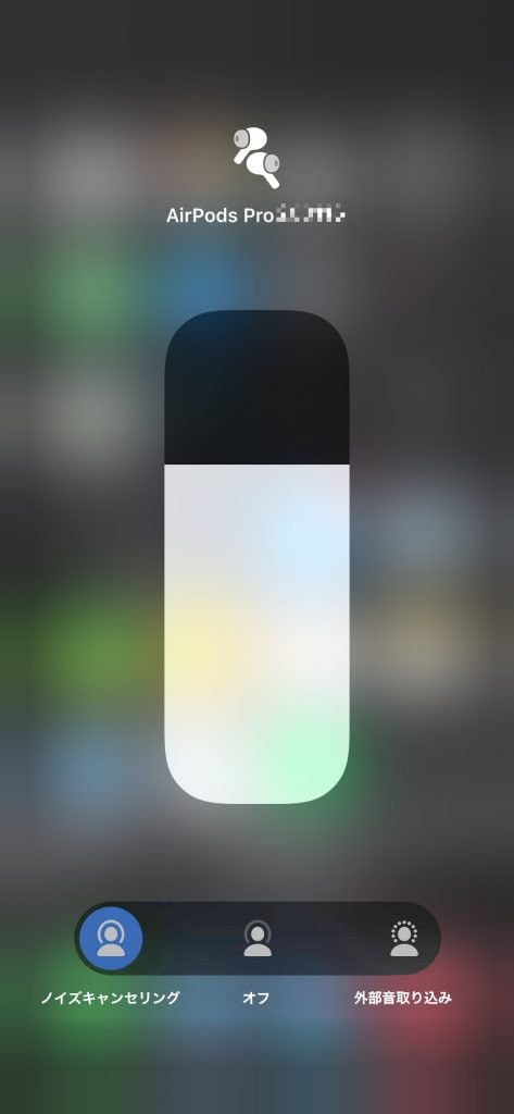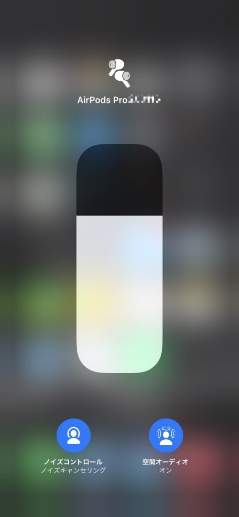 また、AirPods Proを接続した状態でコントロールセンターを開き音量を押し込むと開く「AirPods Proのコントール」部分の内容も変化しています。