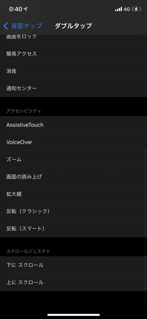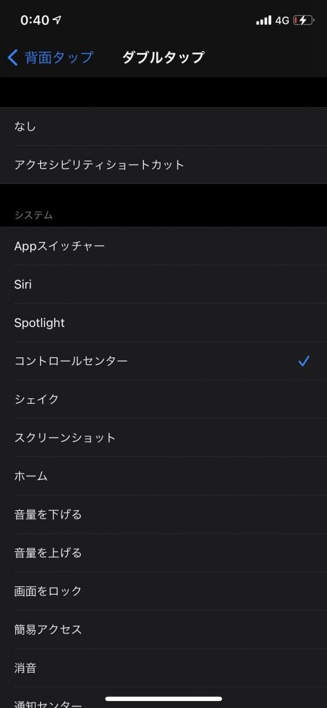 ダブルタップに「コントロールセンター」、トリプルタップに「下にスクロール」を設定して試してみました。
