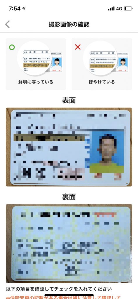 免許証の表面・裏面をそれぞれ撮影します。