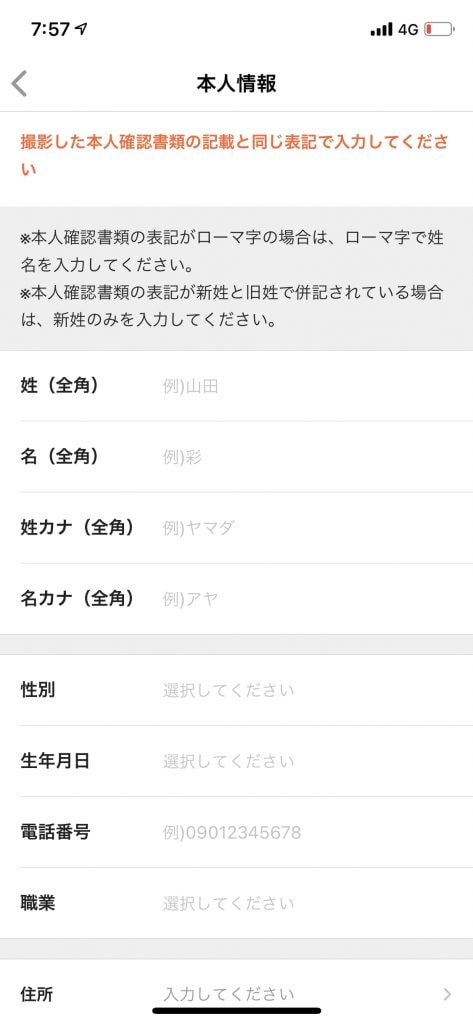 アプリ内の「かんたん本人確認」を利用する