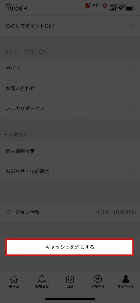 メルカリアプリの「お知らせ」で通知