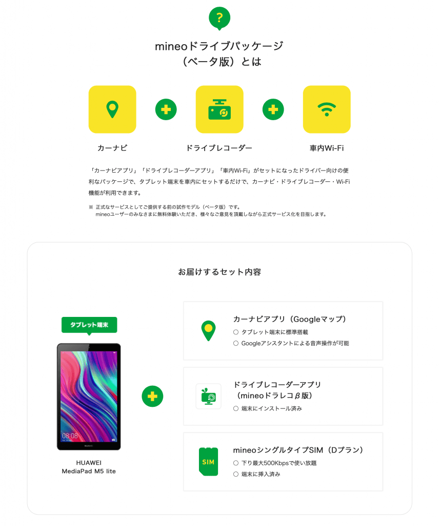 mineoドライブパッケージ(ベータ版)モニター詳細