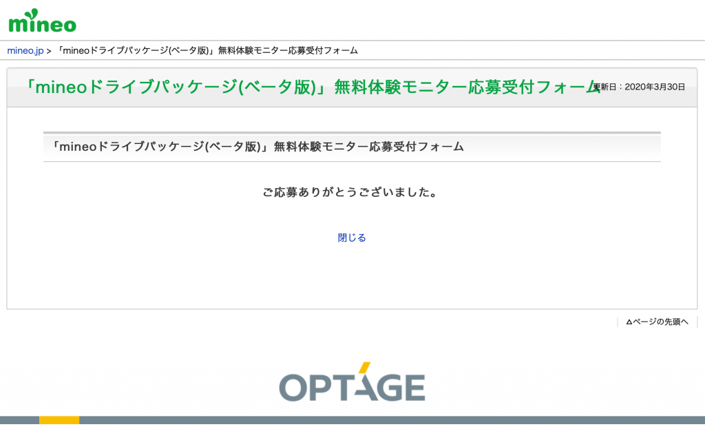mineoドライブパッケージ(ベータ版)モニターに申し込んでみた