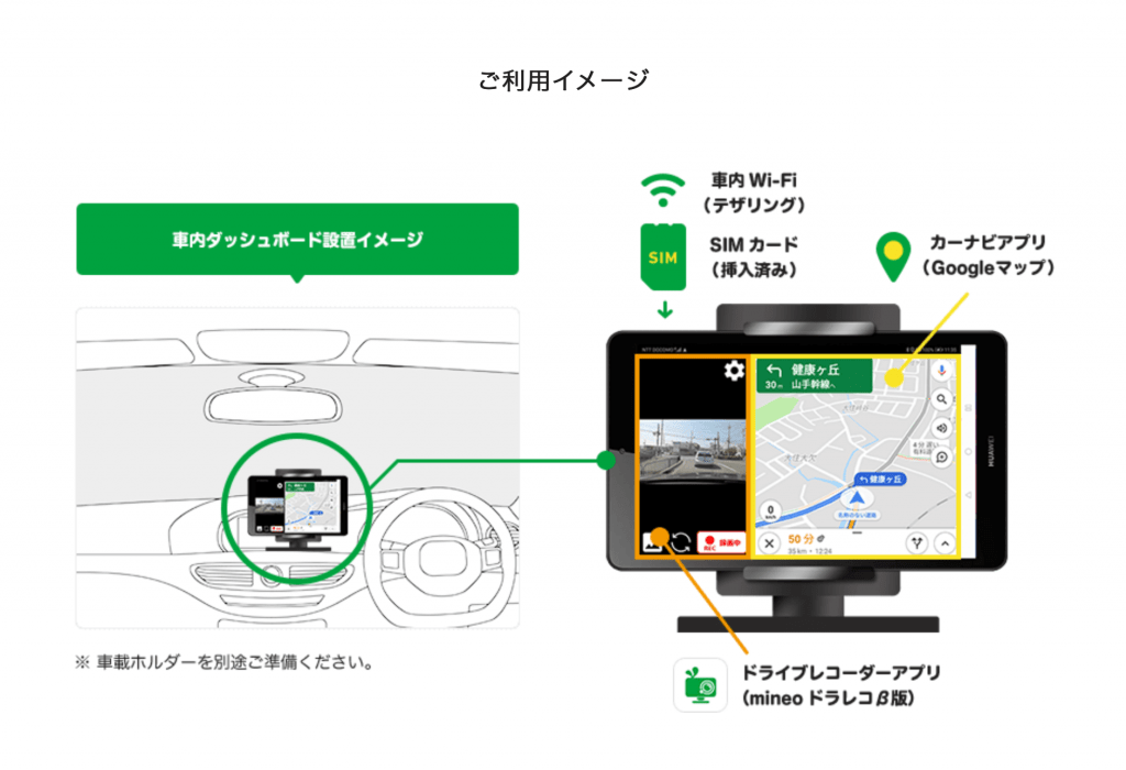 ※SIMとアプリが内蔵されたタブレット端末を車内のダッシュボードに設置いただきます。[無料体験期間]