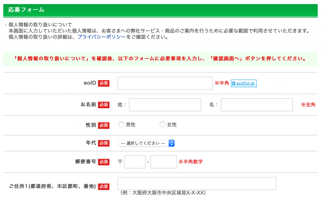 必要事項を入力し確認画面から入力事項を送信すれば申し込み完了です。
