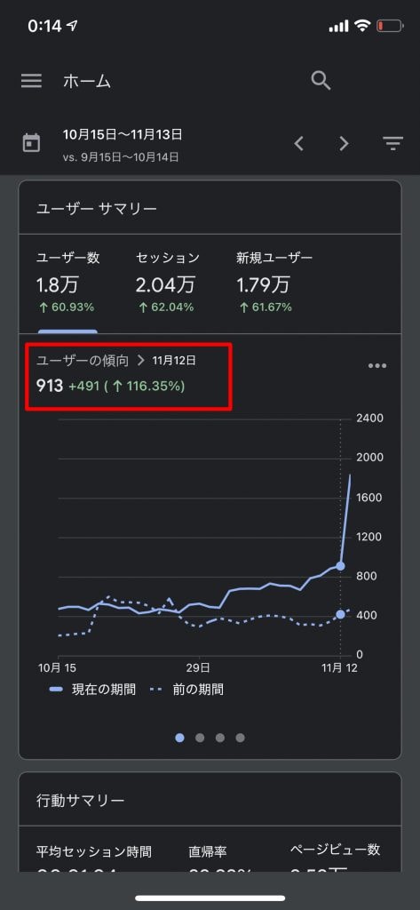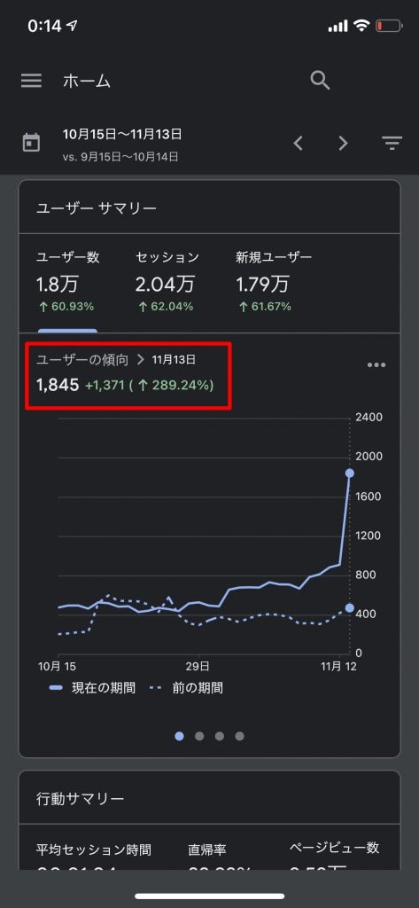ユーザー数も前日が過去最高の913ユーザーでしたが、今回の記事で増加したため1845ユーザーといきなり倍増しました。これまでも緩やかな右肩上がりでユーザー数は伸びていましたが、今回の伸び方は今までにない伸び率でした。