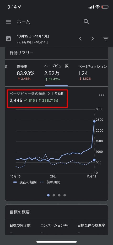 ユーザー数が増えたのでページビュー数も前日1224ビューから、2445ビューに伸びました。