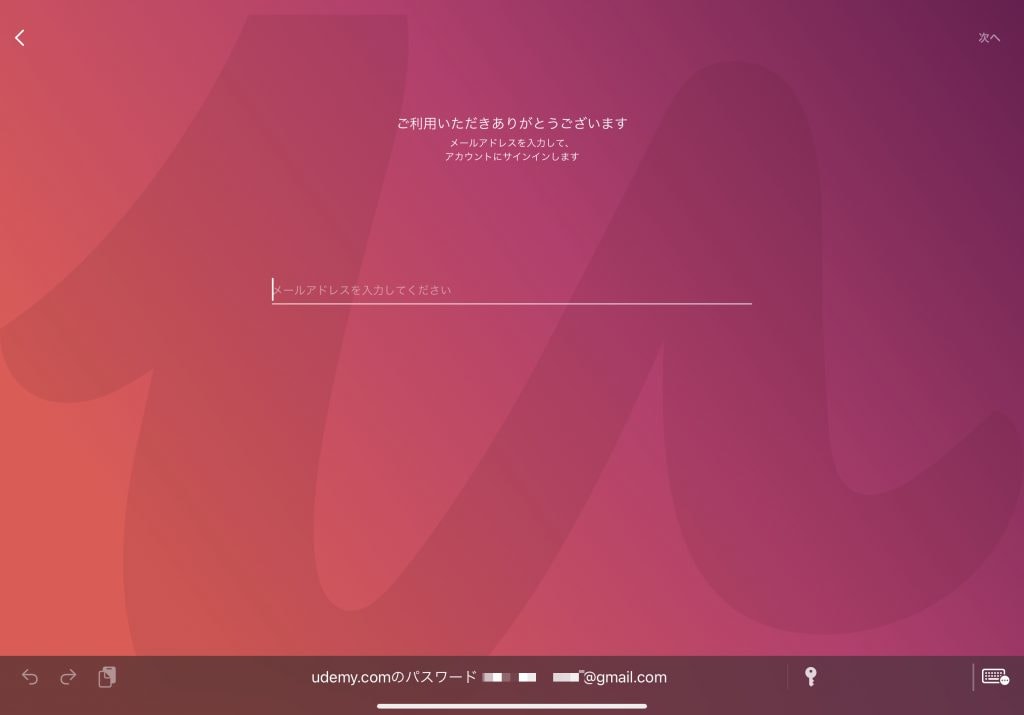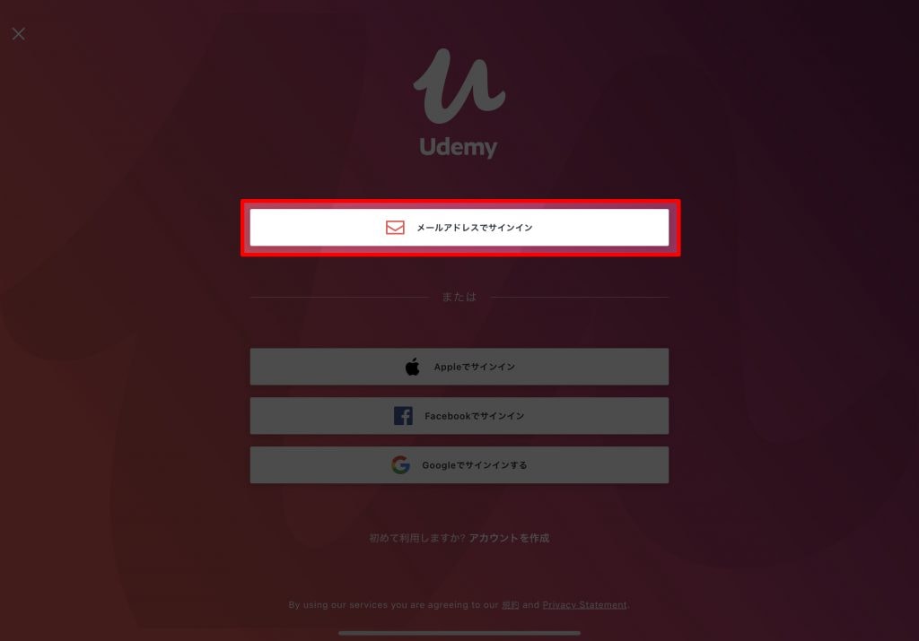 Udemyのアカウントでログイン