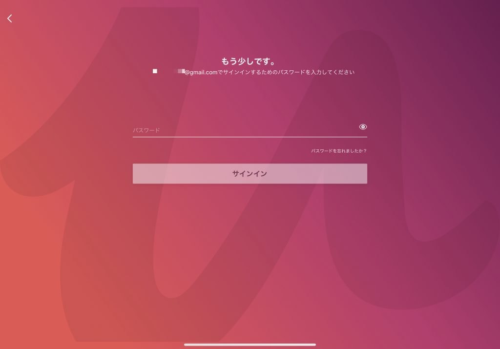 iPadOS版アプリをダウンロードしたら、前回作成したアカウントでログインします。