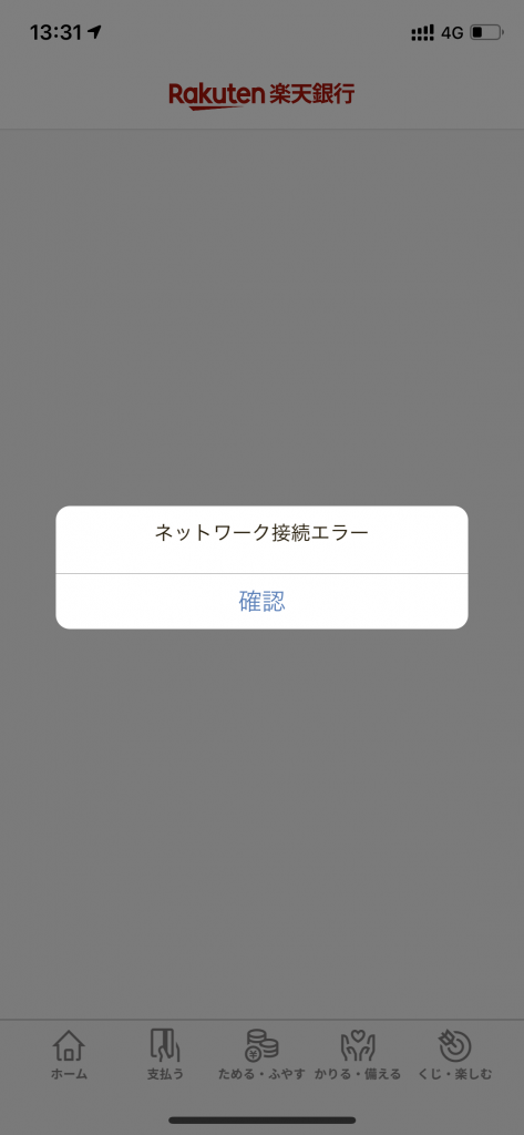 2020年12月25日 午前10時ごろから楽天銀行アプリで接続できない状態が続いています。