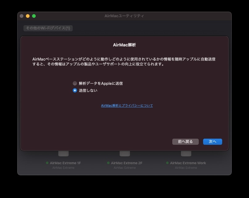 その後は接続する「AirMac Extreme」の表示名を決めるだけで自動で設定を行ってくれます。