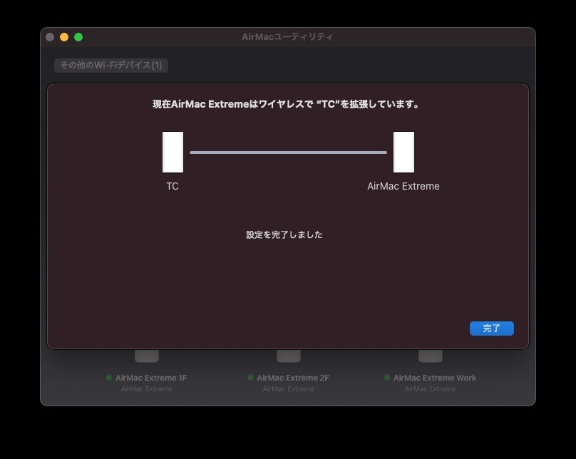 また、無線を受信元と接続されているのでどの「AirMac Extreme」からの電波を受け取っているかも確認できます。