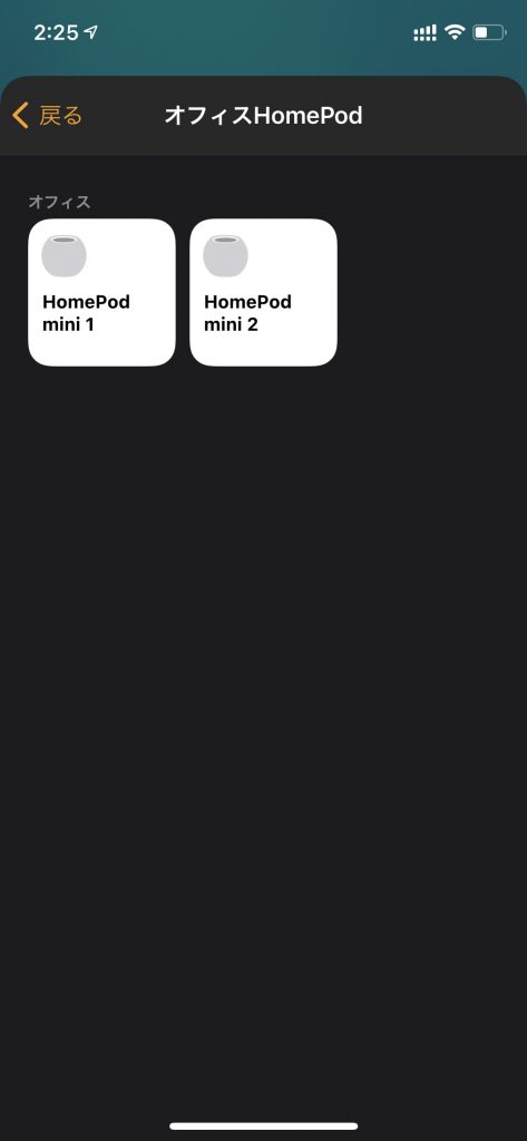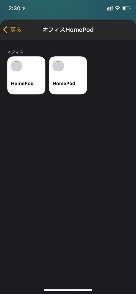 デフォルトの名前「HomePod」が2台表示されるので、名前を変更するHomePodをタップします。