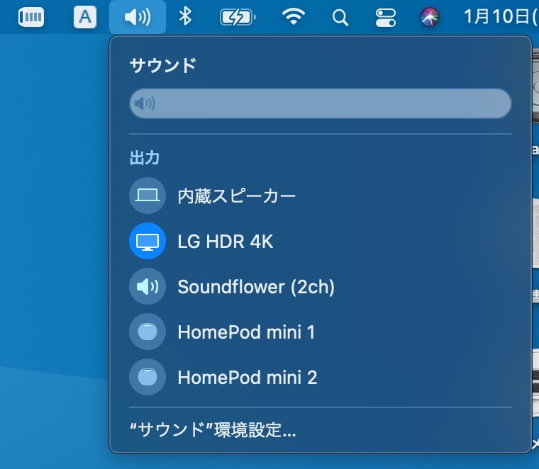 Finder右上部の「サウンド」のコントロールからの選択も名前をつけることにより判別できる状態となりました。