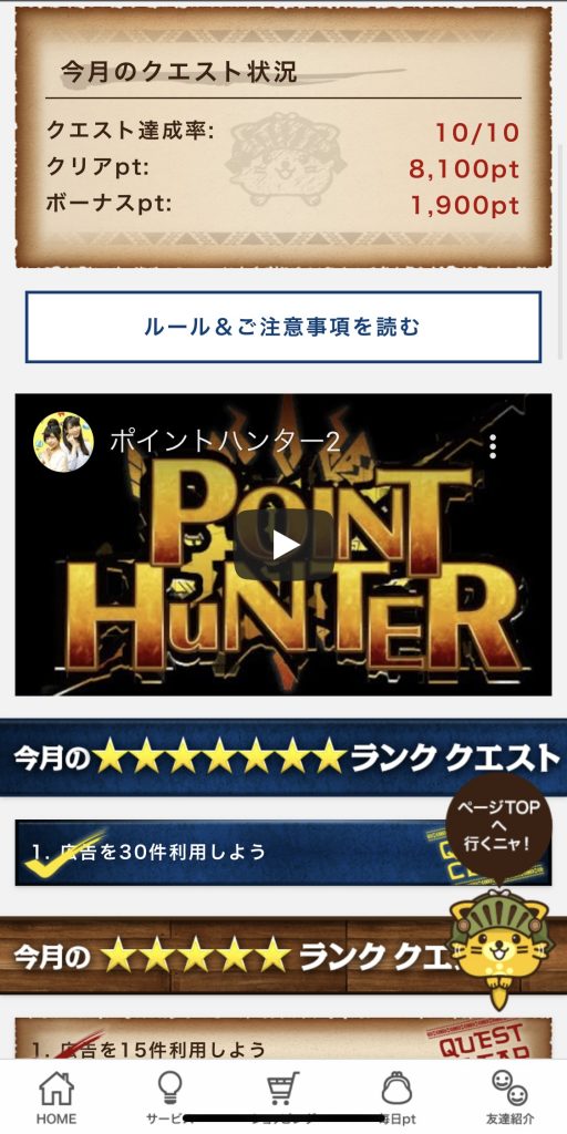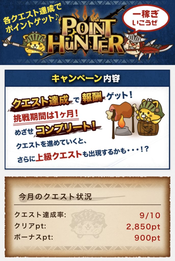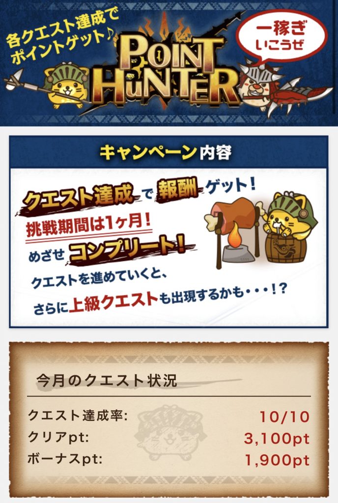 ★★★★★★★星7のランクのクエストを達成でポイントハンター全体の獲得ポイントは10,000pt(1,000円相当)となります。