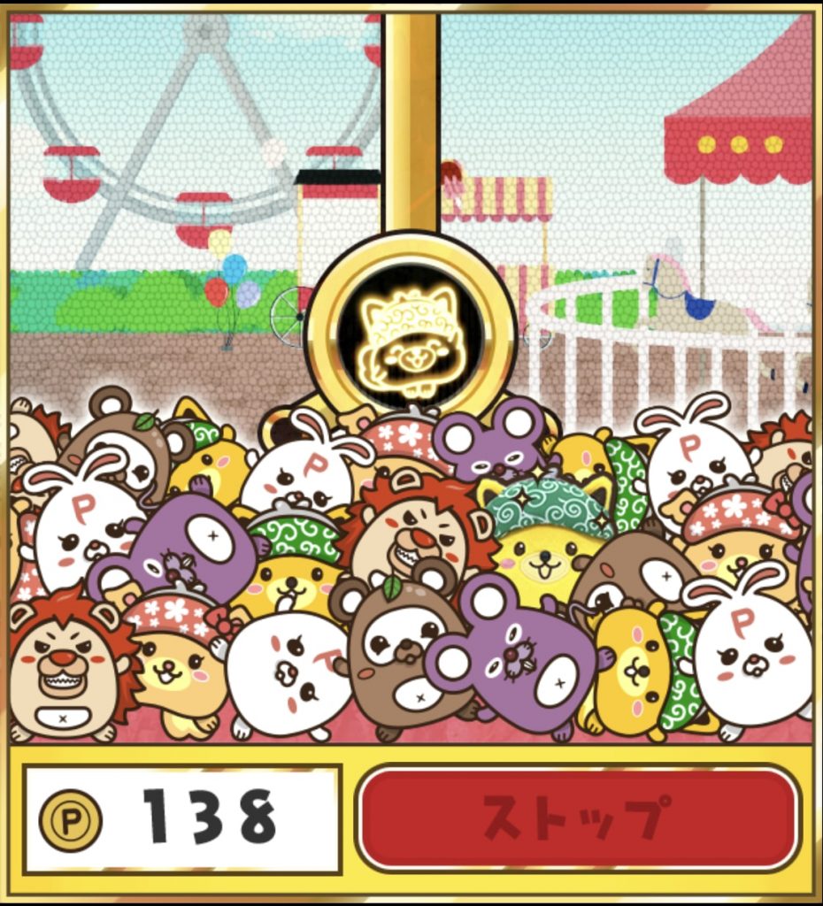 ブロンズトロフィーを手に入れるか、ショッピングの案件の承認を受けることでもらえる福引券で回すことのできるのが「ガラポン」です。5pt、50pt、5000ptのいずれかが当たります。