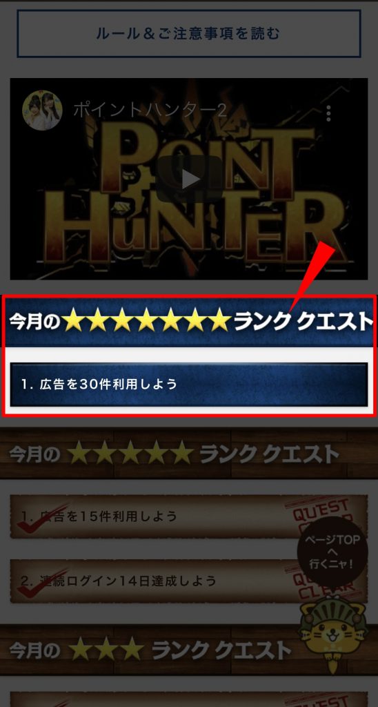サイト内にあるゲームで10pt以上を稼げば達成です。