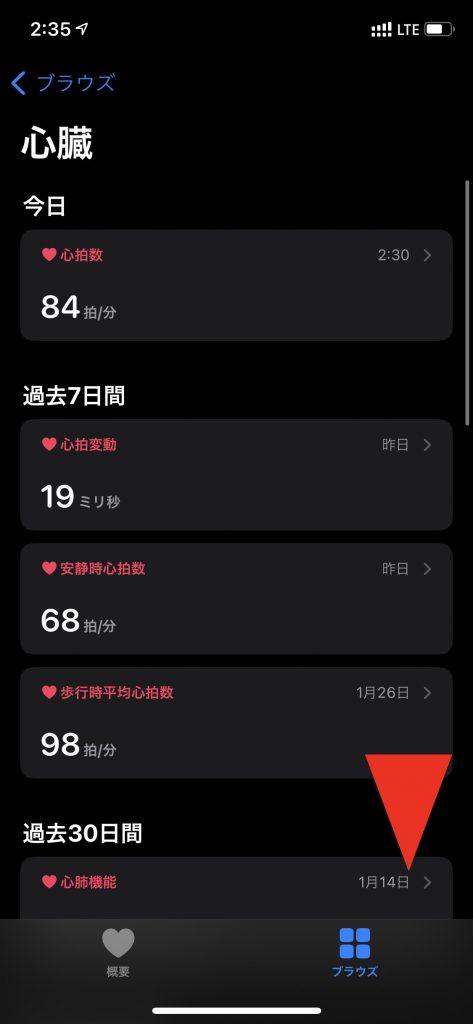 watchOS7.3、iOSを14.4にアップデート後にiOSのヘルスケアアプリを起動、もしくはWatchアプリからヘルスケアに移動します。