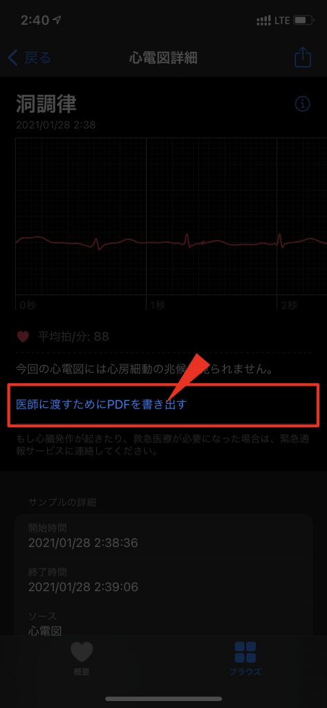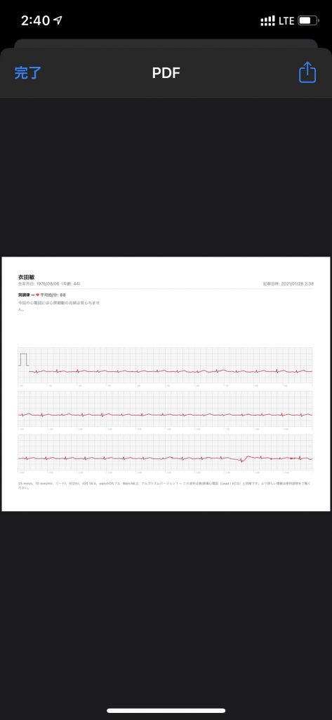 心電図Appでは計測した結果をPDFとして書き出すことができます。