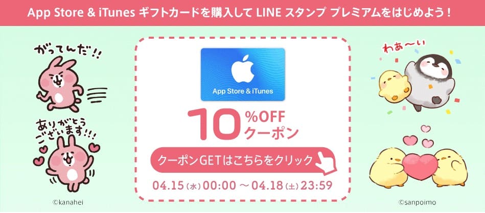 iTunes ギフトカード 10%OFF 4/15(水)~4/18(土)限定