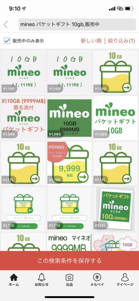メルカリを例に挙げてパケットギフトを購入してみます。