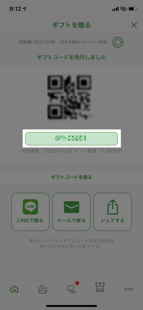 QRコードとギフトコードが発行されました。