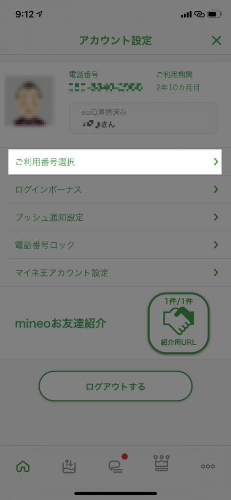 これでmineoアプリで確認できる回線が変更されました。